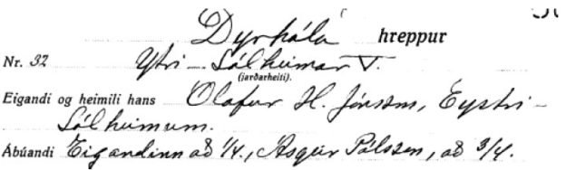 [32] Fasteignamatsgögn 1940, fasteignamat 1942 og jörð Ásgeirs Pálssonar í veðmálabók.