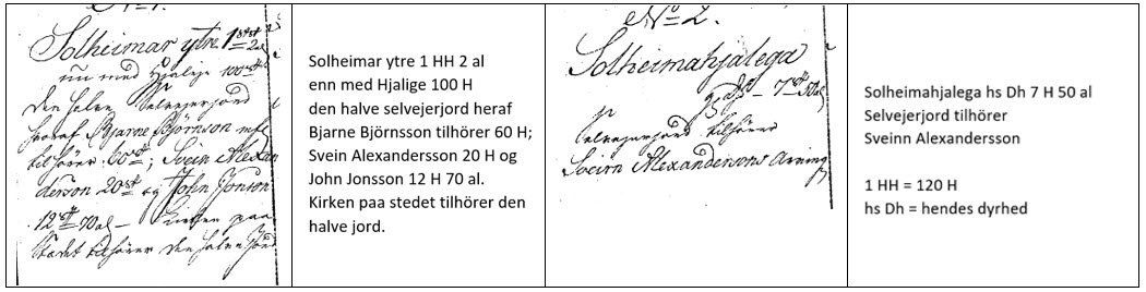 Ekki verða bornar brigður á að ¼ af 20 H eru 5 H. Þegar nytjahlutinn 5 H er dreginn frá 20 H jörðinni Ytri-Sólheimar V er leiguhluti jarðarinnar jafn hinni leigujörðinni, Ytri-Sólheimar VI, eins og vera ber samkvæmt hinum fornu dýrleikum.
